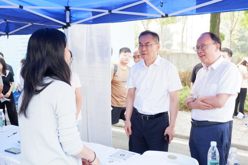 校长张健与我校长期有合作的企业代表进行深入交谈,了解近年来企业在我校的招聘情况以及我校学生在企业的发展情况。随后,他又满怀关切与温情地走到学生中间,与学生们亲切交谈,耐心倾听学生们对于就业的想法和困惑,仔细询问学生的就业情况,包括已投递简历的数量、收到面试邀请的情况以及对未来职业发展的规划等。校长的关心和指导,给予了学生们极大的鼓舞和信心,让他们在求职的道路上更加坚定地前行。