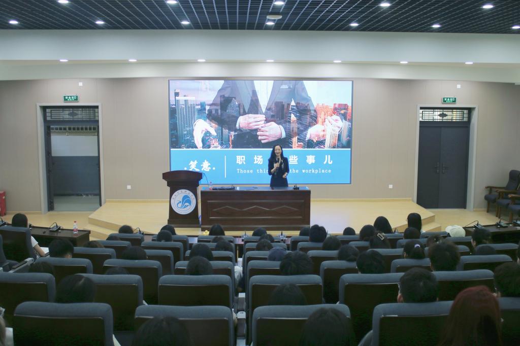活动邀请国家人力资源高级管理师、资深HR、罗塞塔生物科技公司副总经理邓晓奕老师作《职场那些事儿》主题讲座。邓晓奕从事人力资源管理和企业管理工作长达18年,有着扎实的人力资源管理理论基础和实践操作技巧,熟悉企业人才定位及招聘需求。结合目前职场现状问题和自身实际工作经历,邓晓奕老师重点介绍了面试中的肢体语言选择、口头表达、情绪场控等实用技巧,并引导同学们在职业生涯规划、求职就业过程中树立正确就业观、择业观、职业观。