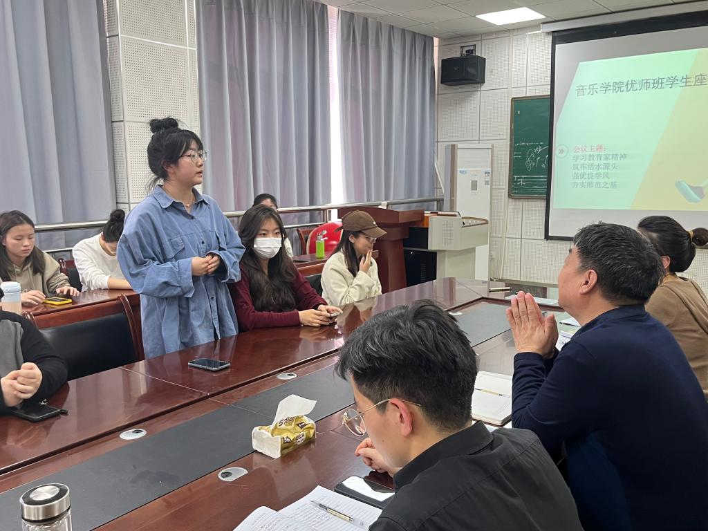 为深入贯彻党的二十大精神,切实提高学院“优师计划”师范生培养质量,音乐学院以“学习教育家精神,筑牢活水源头,强优良学风,夯实师范之基”为主题,11月1日下午2点,在启真楼音乐学院会议室召开“优师计划”师范生座谈会。学院党委书记仵录让、各年级优师班辅导员、优师班学生代表30余人参加了会议。