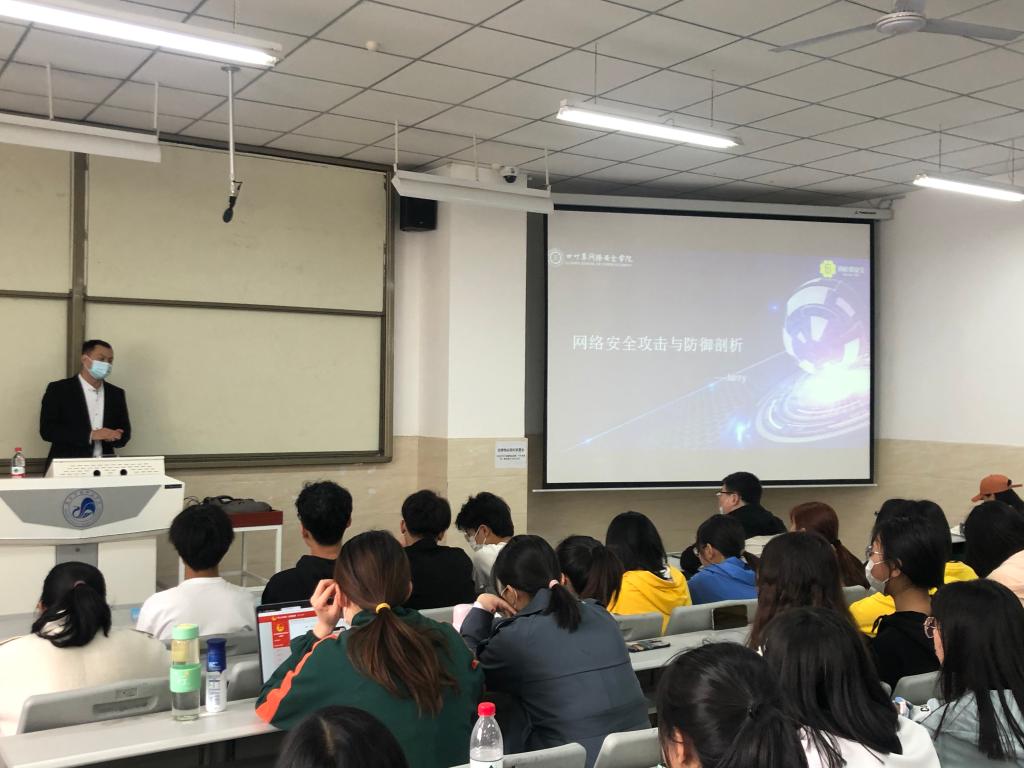 4月14日下午,中国信息安全评测中心注册信息安全工程师邹志刚在智慧楼阶2教室为我校师生作了题为《网络安全攻击与防御剖析》的主题讲座