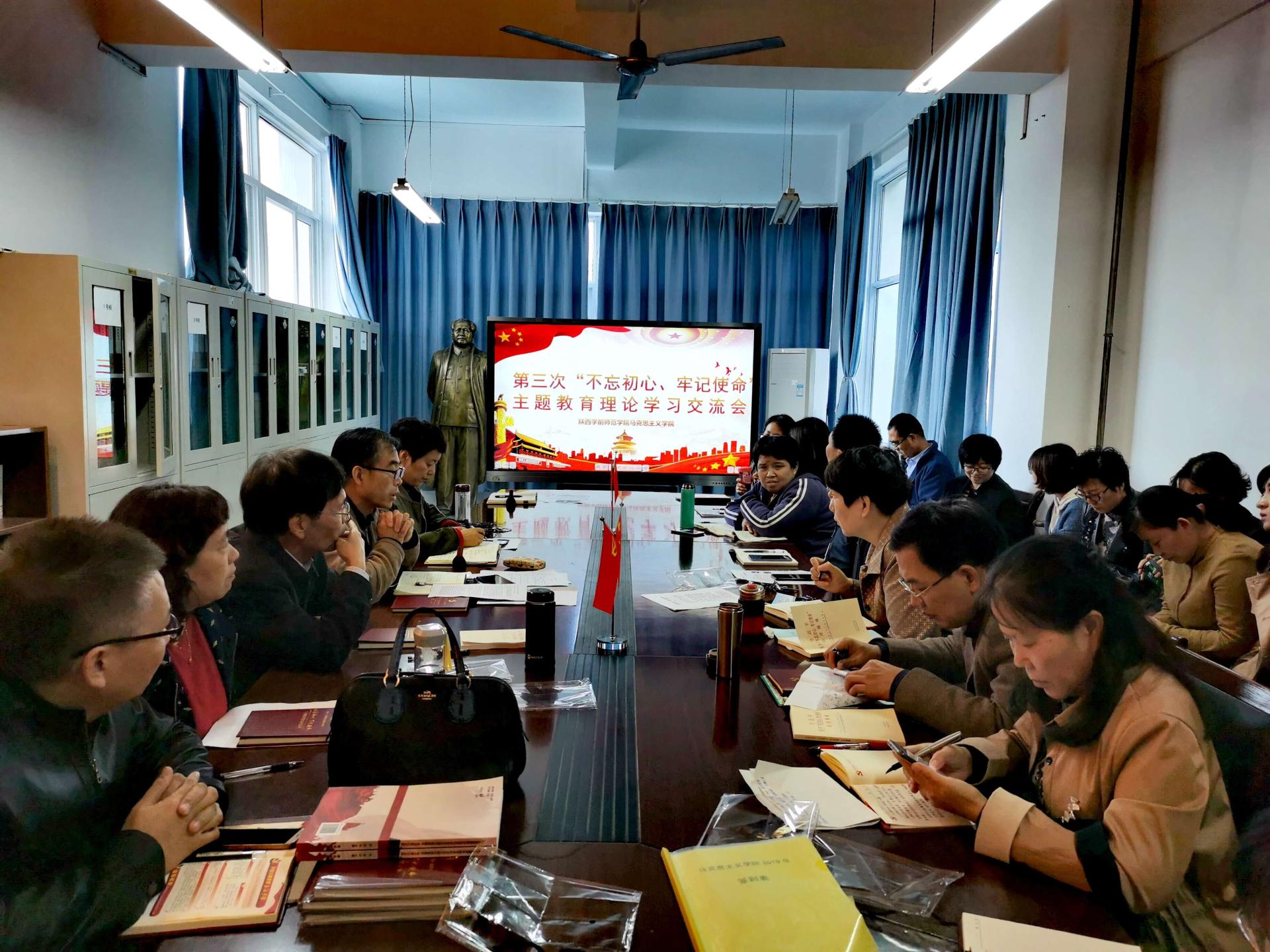 10月16日下午,马克思主义学院召开“不忘初心、牢记使命”主题教育第三次读书交流推进会,全体党员参加了学习交流。会议由党总支副书记高萍主持。